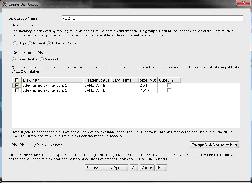 1. ONLINE 4f4c817a9c5f4fa6bfb0ec9adc61ec39 (/dev/asmdisk5_udev_p1) [DATA2]