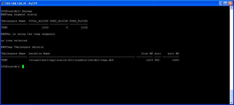 The qtemp script will show the used and free temp file blocks, who is using the temp blocks and the details of the temp files.